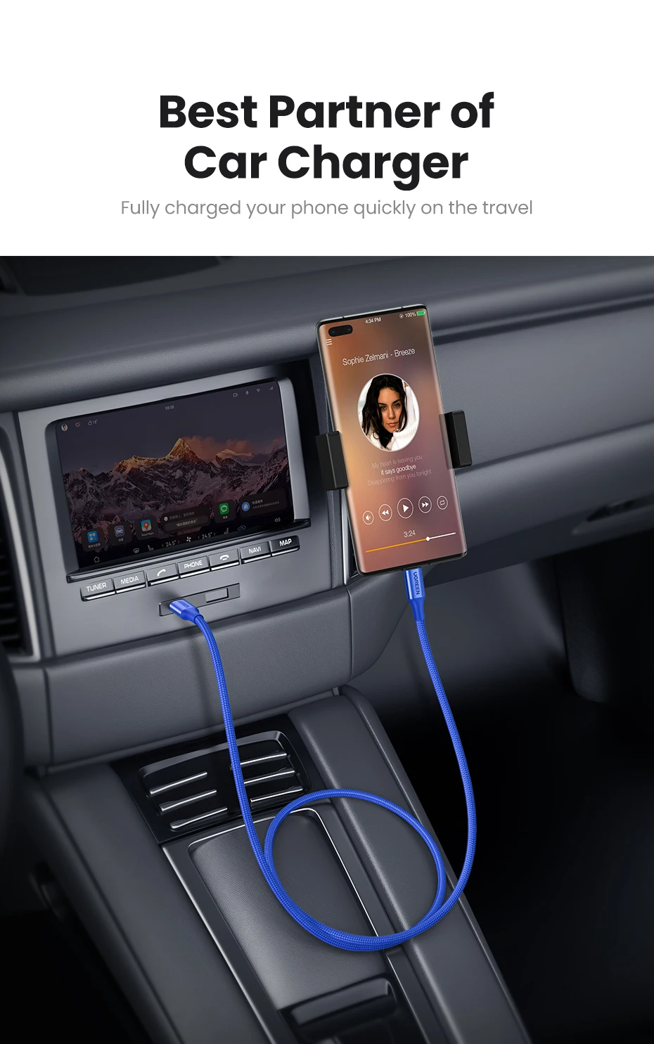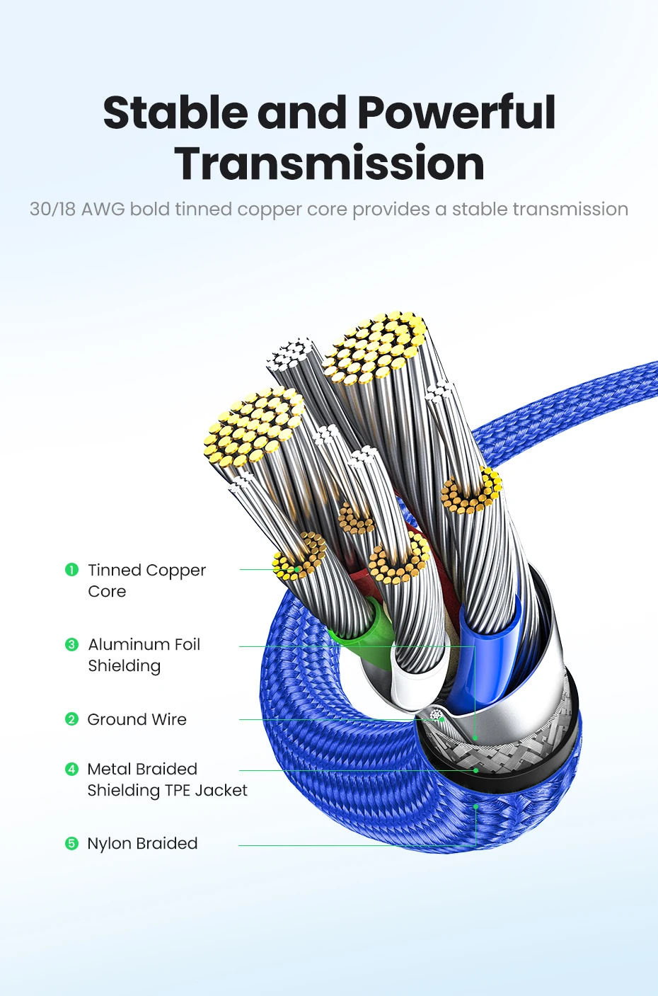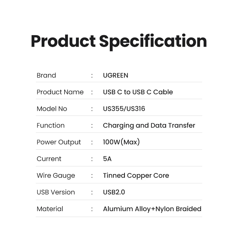 Charge your devices swiftly and safely with the Ugreen USB Cable, featuring a 100W Type C to Type C connection. This high-capacity cable is designed to support PD100W (Power Delivery) and QC4.0 (Quick Charge 4.0), making it ideal for rapidly powering up devices like MacBooks and Samsung smartphones. Its robust construction ensures durability and reliable performance for all your charging needs.