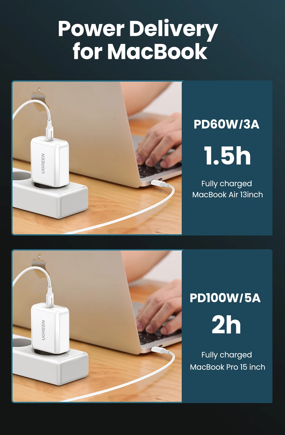 Ugreen 2 Pack USB C Cable 60W 3A Quick Charge 4.0 Samsung MacBook iPad Pro
