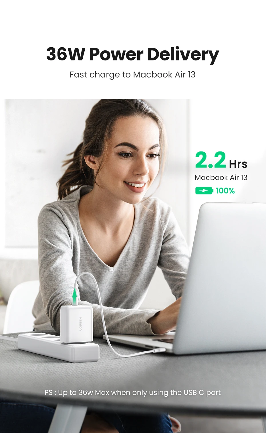 Experience enhanced charging speed with the Ugreen 38W Fast USB Charger, featuring Quick Charge 4.0/3.0 and Type C PD, tailored for rapid charging of devices like the iPhone 14 and 13.