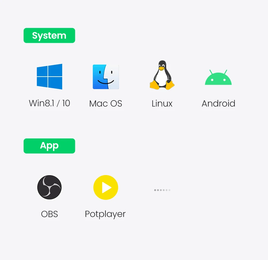 The audio-video capture card is very suitable for live streaming , Recording, editing and transferring video in high resolution of 1080p/30fps on OBS, XSplit, Potplayer, QuickTime Player and more.
