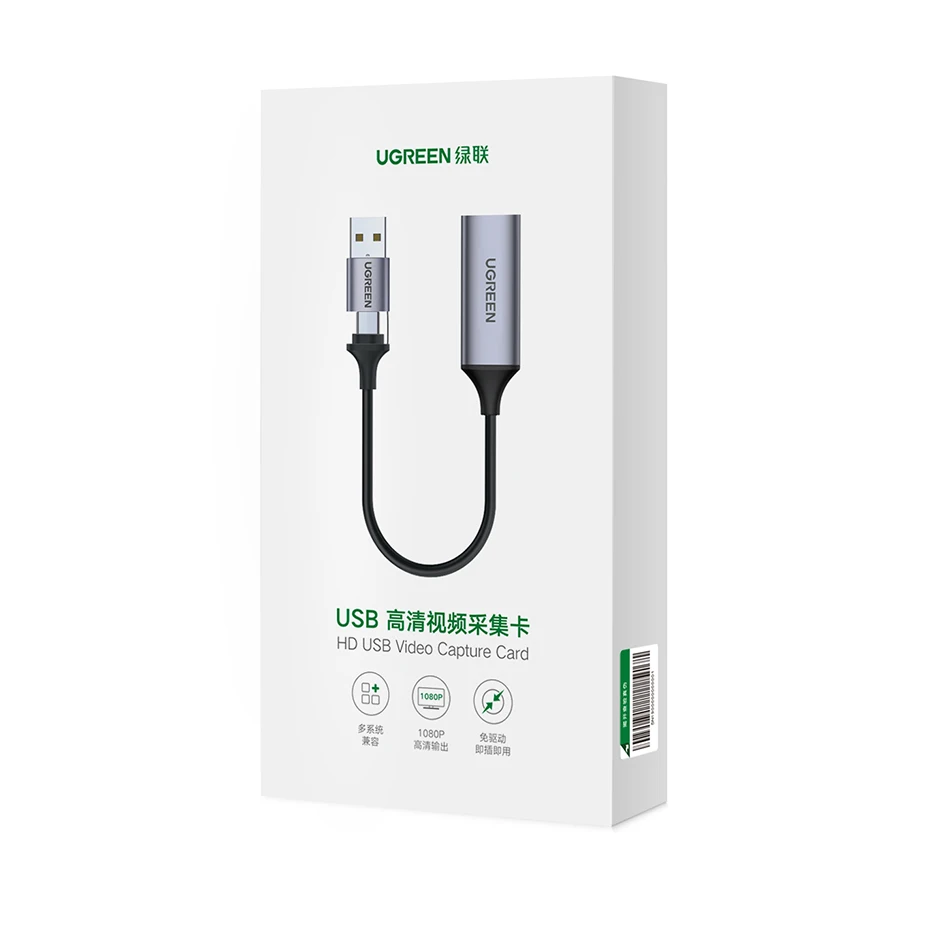 Enhance your live streaming and video recording setup with the Ugreen HDMI to USB Type C Video Capture Card. This high-quality adapter grabber box allows you to convert 4K HDMI input to USB Type C output, making it perfect for PCs, DSLR cameras, and live streaming applications. Whether you're a content creator, streamer, or professional videographer, this capture card ensures high-definition video quality and seamless transmission.