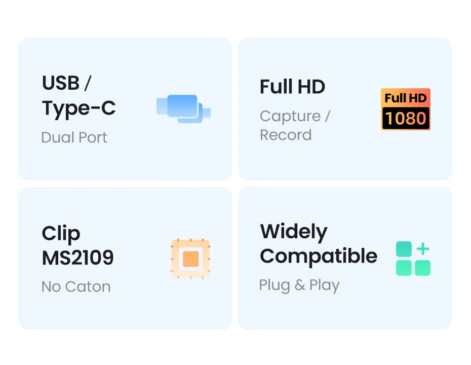 Ugreen video capture card is connected to the input device through the HDMI port, and transmitted to the output device with the USB/Type-C interface for living broadcast. It is widely used in HD acquisition, teaching recording, live streaming, medical imaging, online meetings, etc.