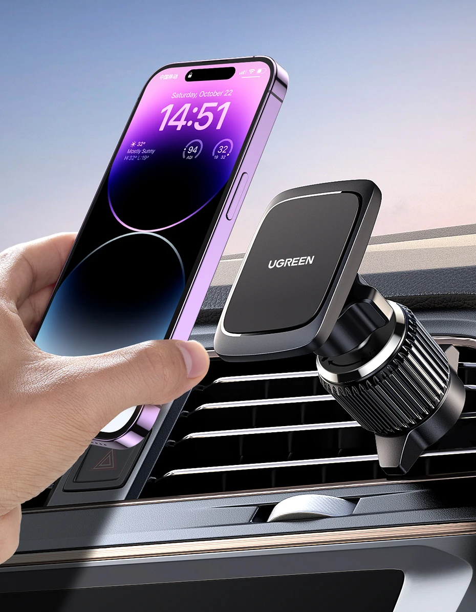 Drive with confidence using Ugreen's Magnetic Car Phone Holder. Universally designed, this air vent mount is perfect for securely holding iPhone 15, 14, 13 Pro, Xiaomi, Samsung, and other cell phones while on the road.