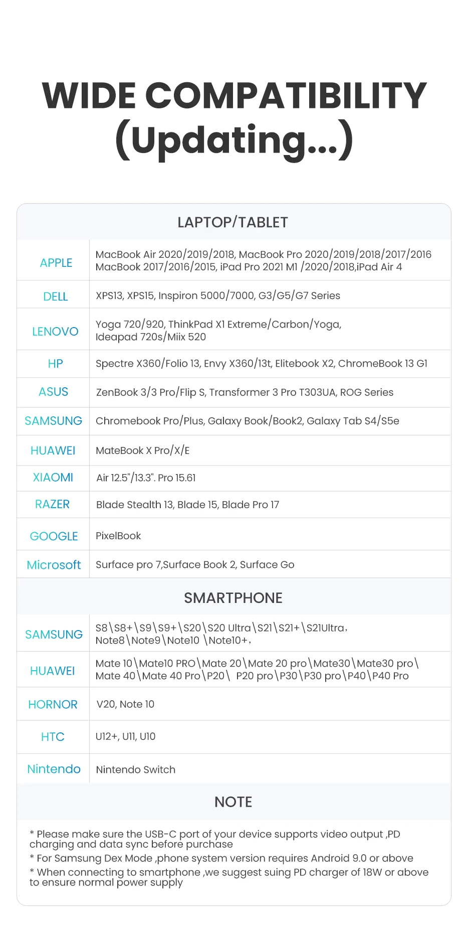 PD 60W (9-in-1/90119),PD 100W (7-in-1/60515, 6-in-1/60384, 6-in-1/60383)