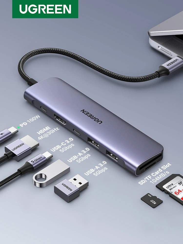 Ugreen Usb Type C Hub 3.1 To Hdmi 4K Sd Tf Pd 100W Adapter MacBook iPad Pro Air