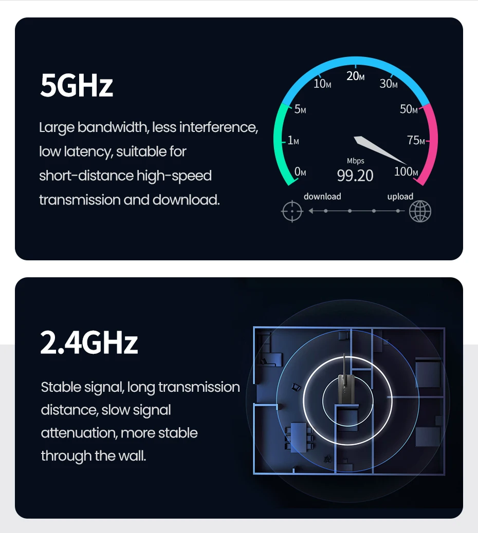 - Dual-band WiFi adapter with 5G and 2.4G frequencies for flexible connectivity