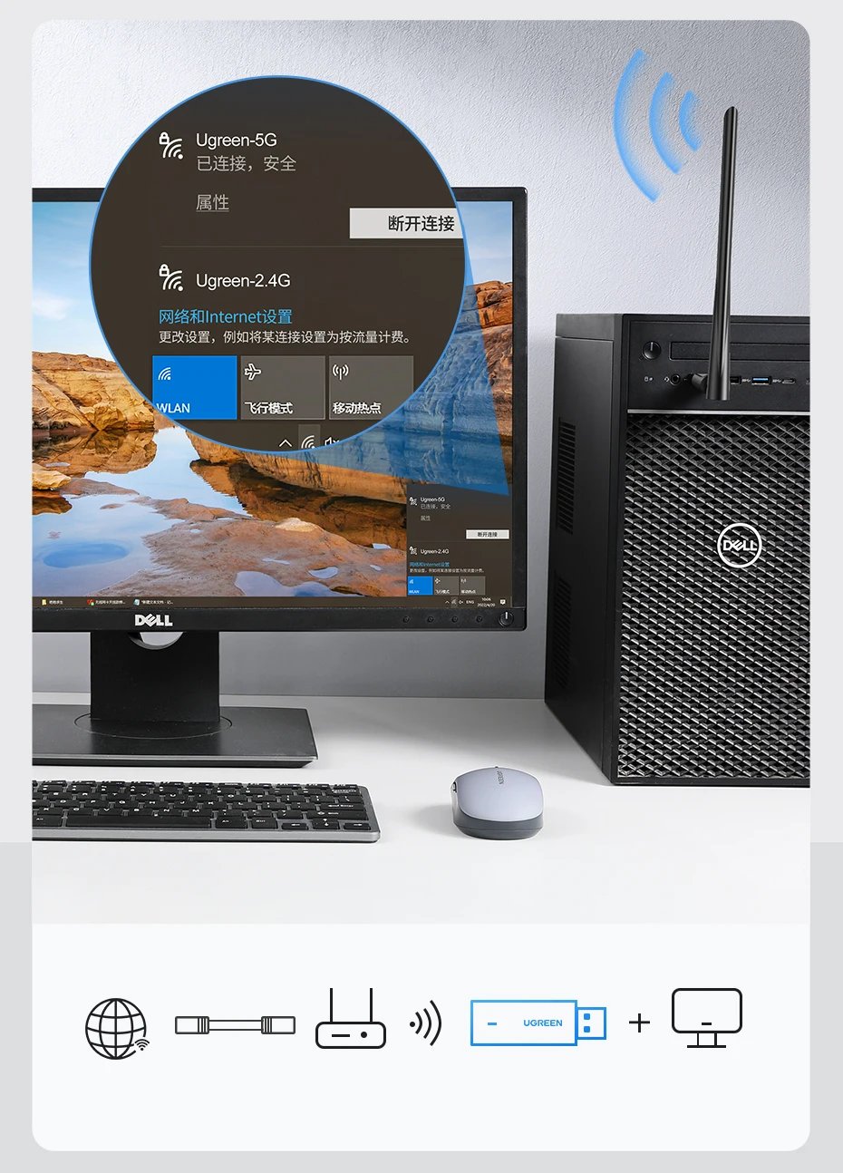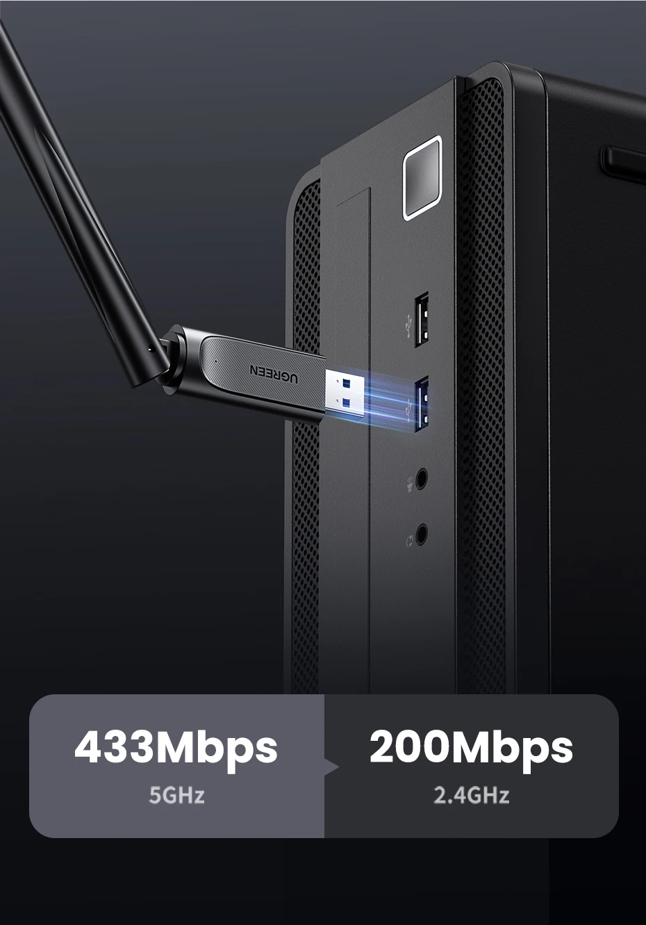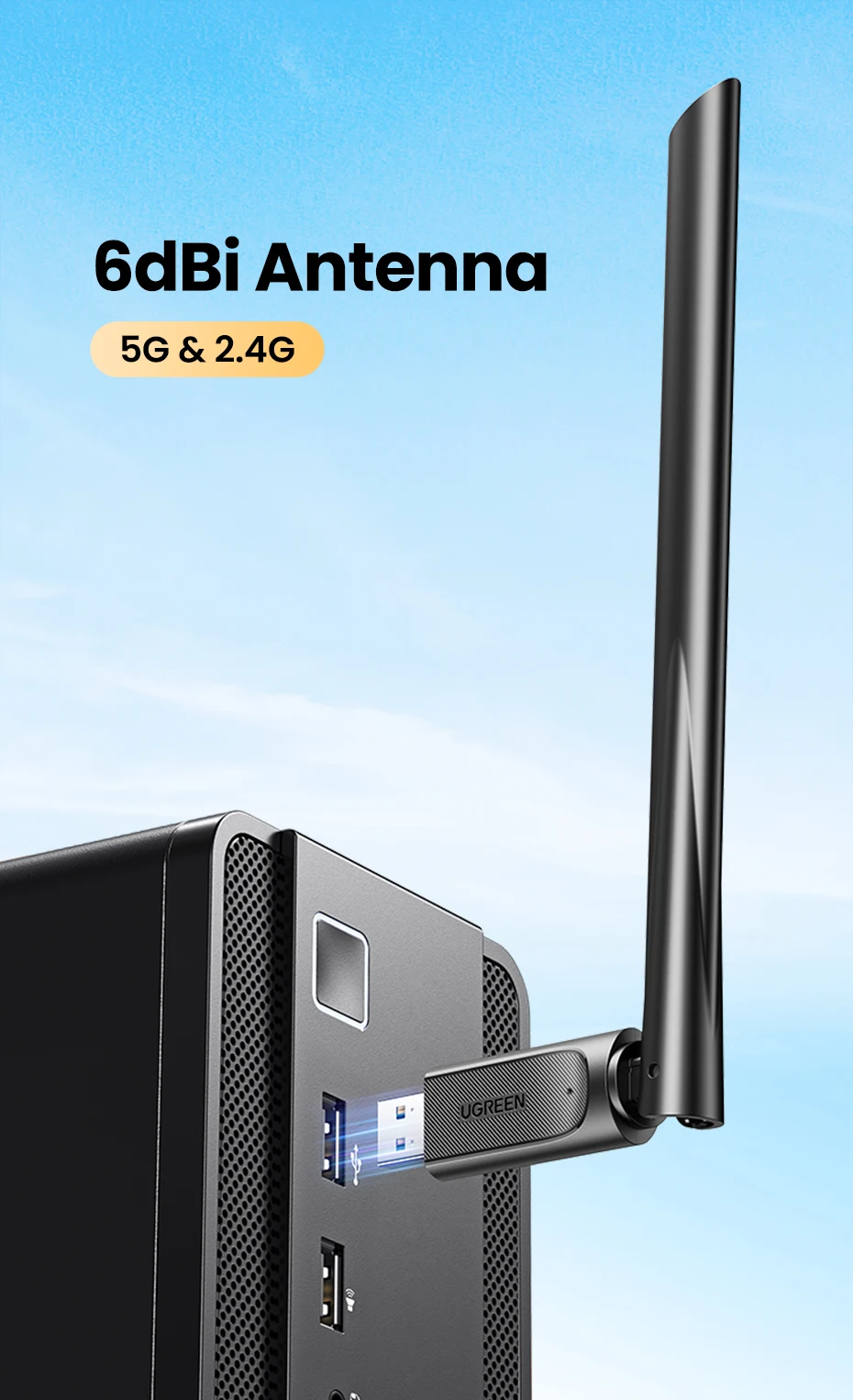 Ugreen WiFi Adapter AC650/AC1300 Dual Band 5G&2.4G with 6dBi Antenna PC Windows
