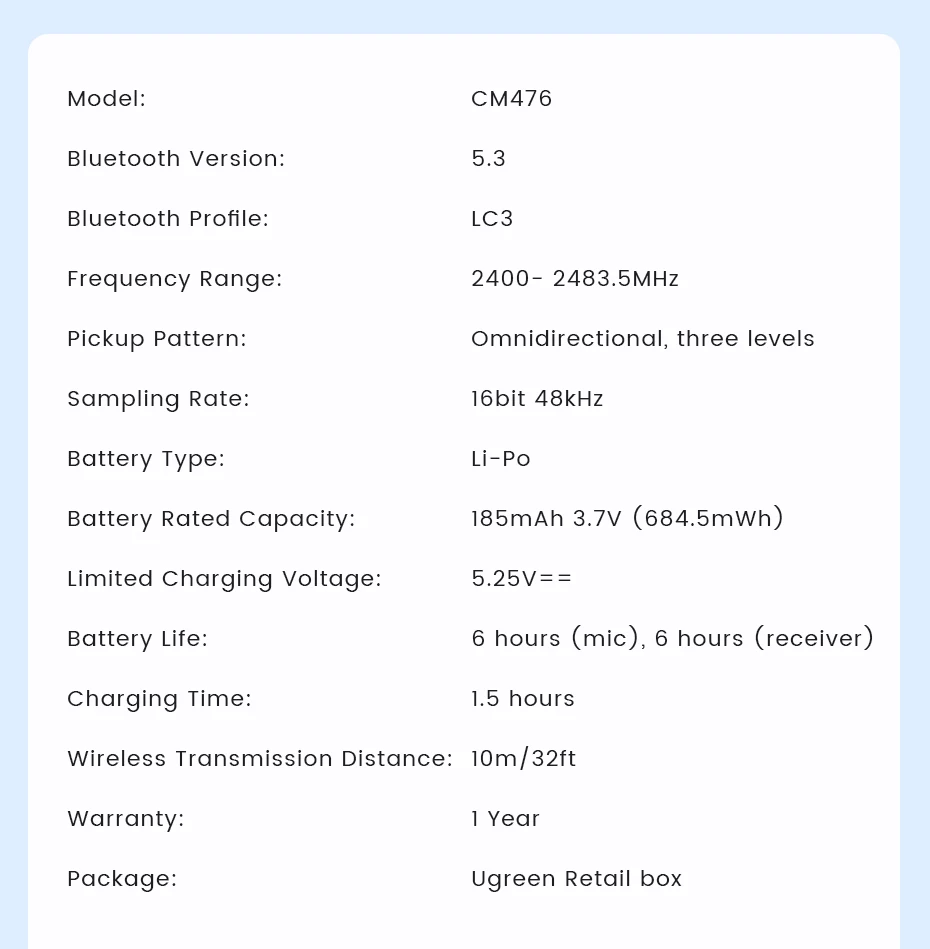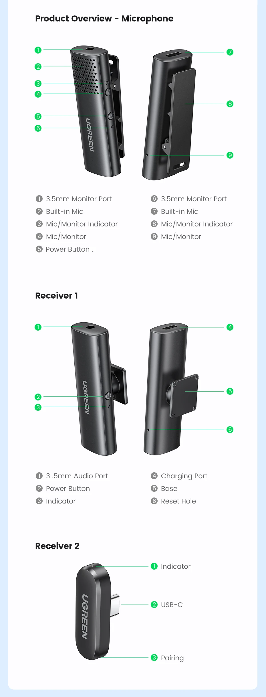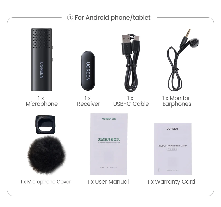 Ugreen Wireless Lavalier Microphone Omni Condenser Noise Reduction Bluetooth