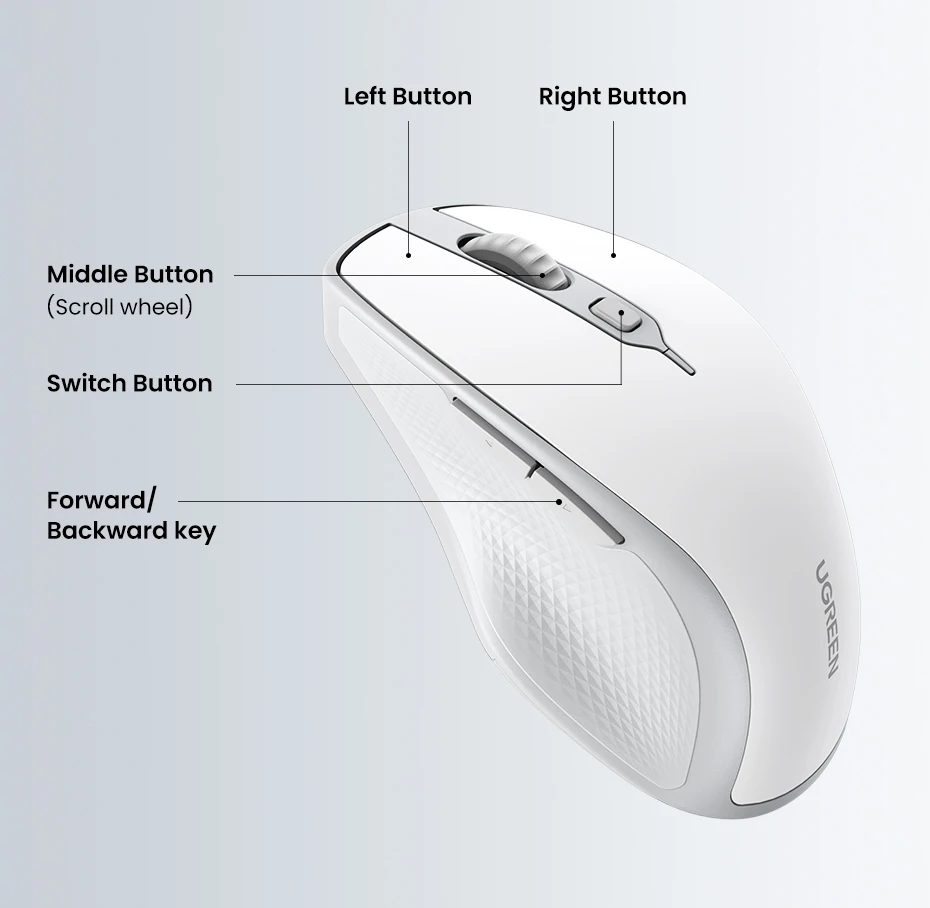 Enhance your productivity with the Ugreen Wireless Mouse. This ergonomic mouse offers Bluetooth 5.0 connectivity, high precision with 4000 DPI, and six mute buttons for a seamless experience.